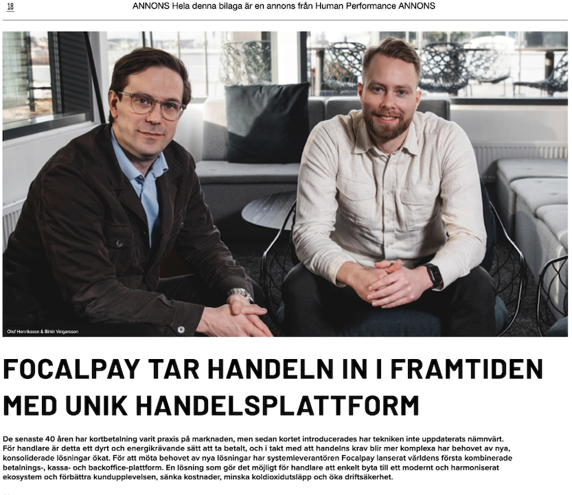 Our CEO Birkir Veigarsson and CRO Olof Henriksson are interviewed in Svenska Dagbladet about how Focalpay takes retail and payments into a new era.